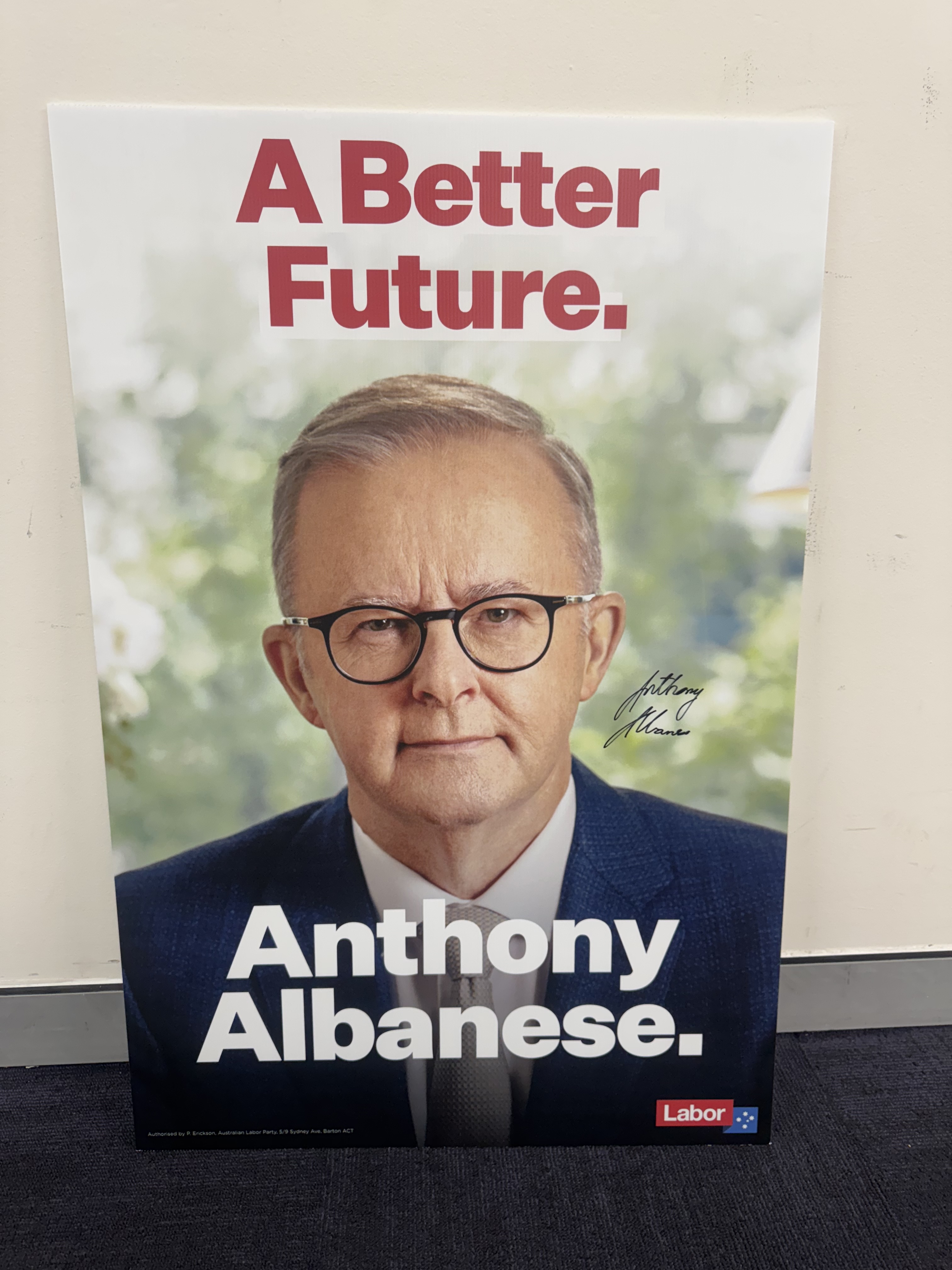 First Prize:Signed Anthony Albanese Corflute.